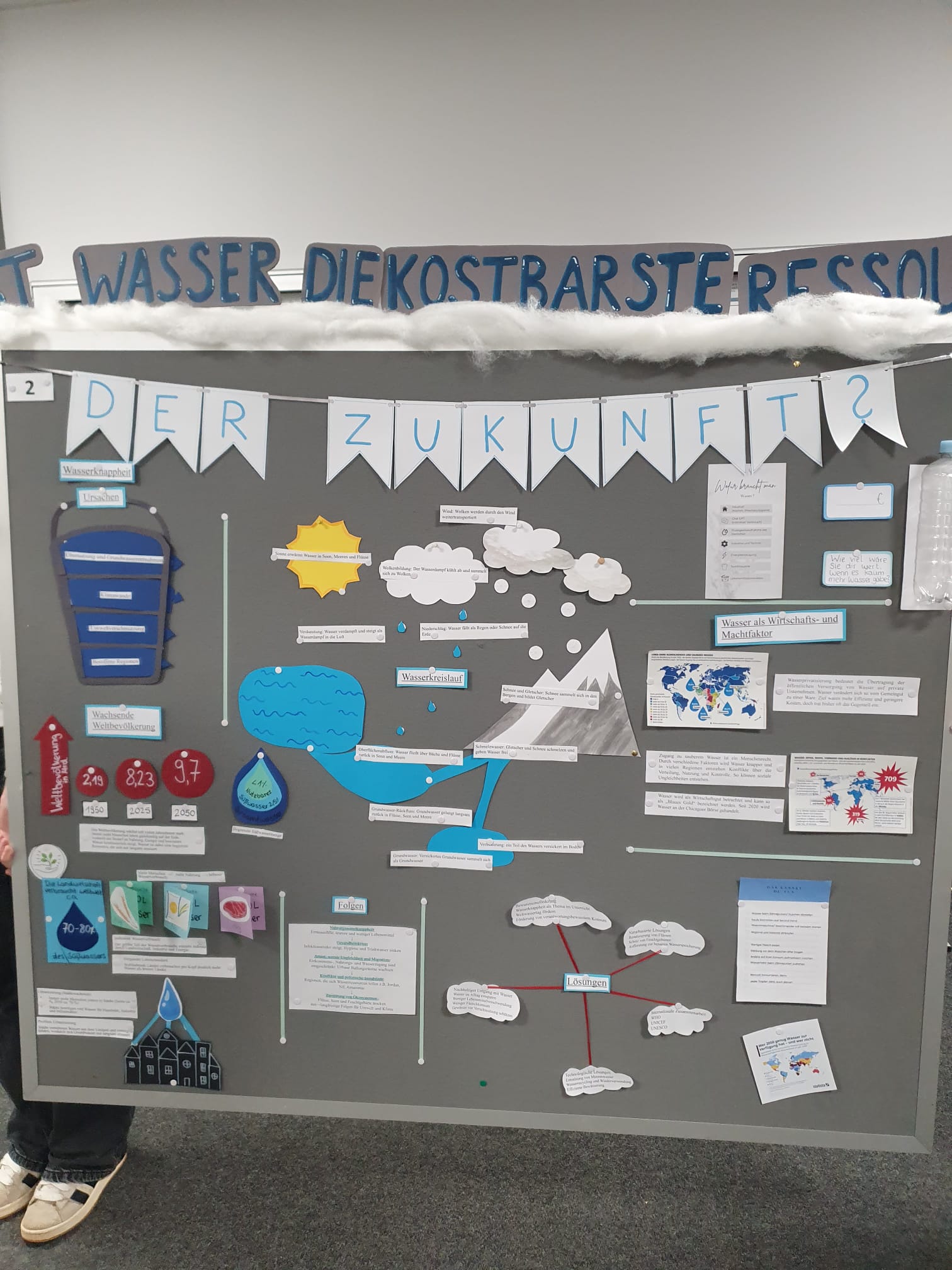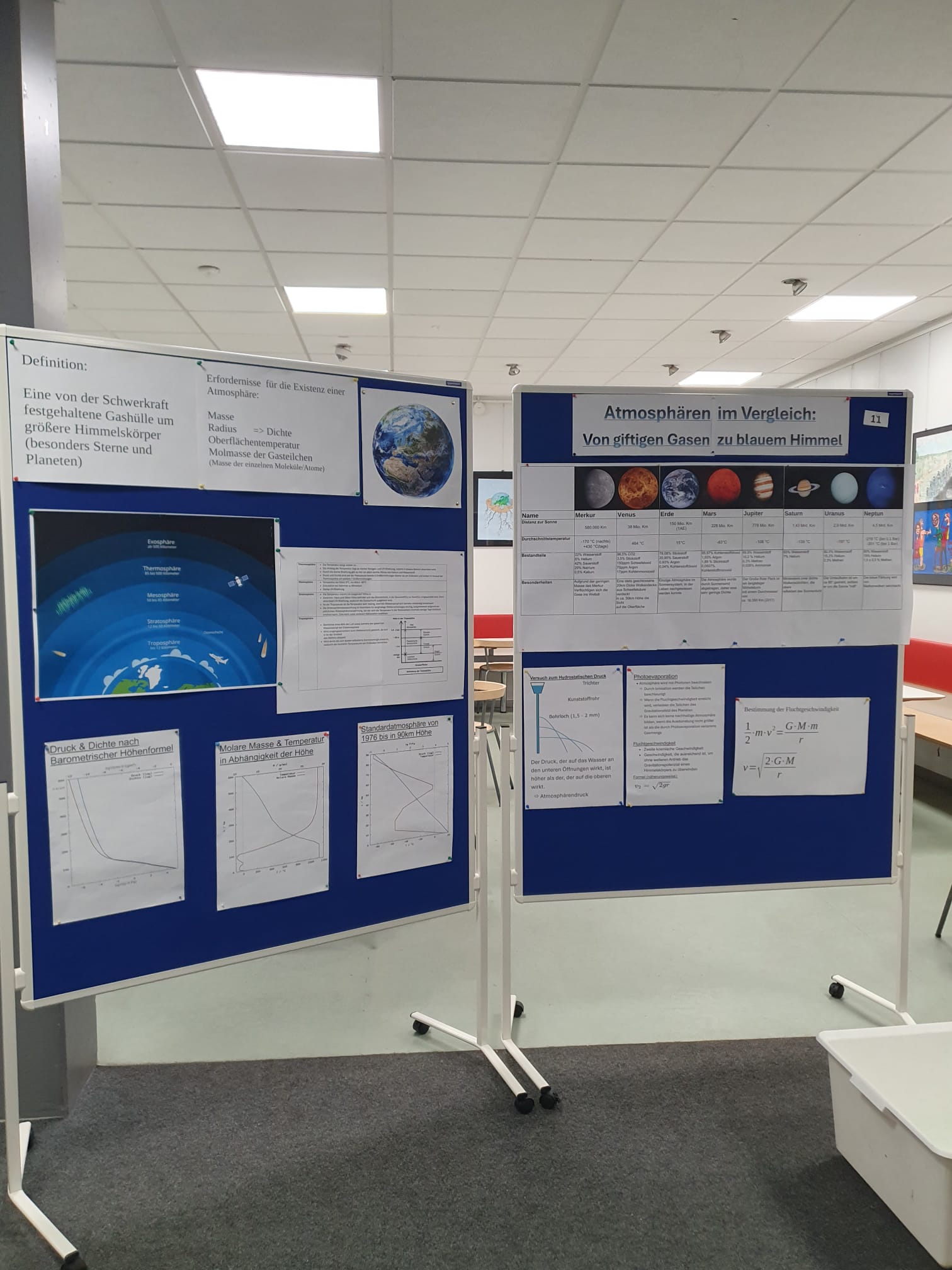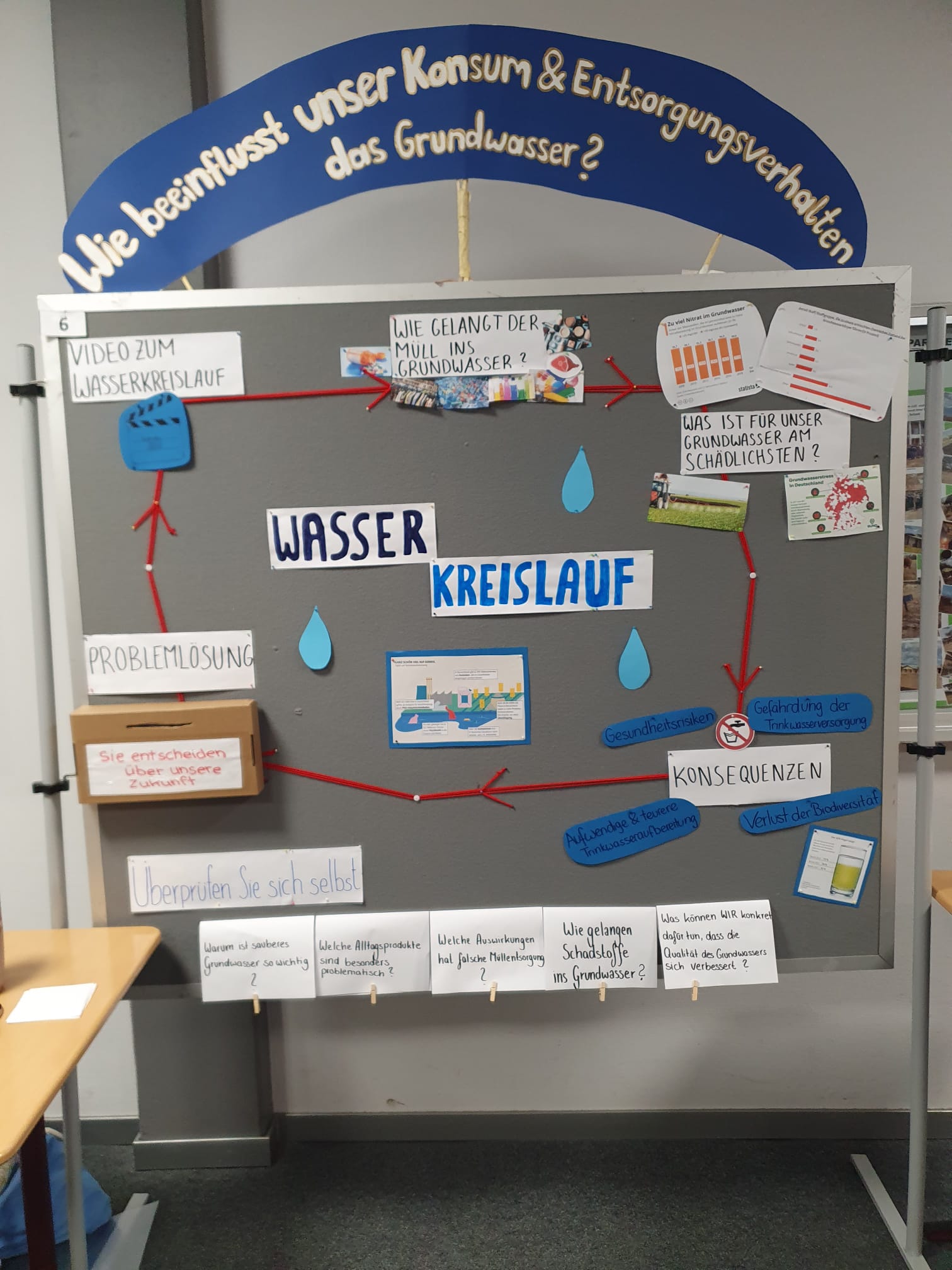 Aus dem vorgegebenen Oberthema „Wasserkreislauf – Der Atem des Planeten“ hatten sich die Gruppen eigene, aufs Profil zugeschnittene Themen abgeleitet und auf kreative Art und Weise auf Stellwänden veranschaulicht. Dazu wurde der Inhalt zusätzlich noch durch die Gruppenmitglieder erklärt. Die Gäste durften auf einem Feedbackbogen Rückmeldung zu den Stellwänden und zur Art der Präsentation geben. Daraus ergab sich ein fast ausschließlich positives Bild des Abends. Auch die Schülerinnen und Schüler der Profilseminare und die Lehrkräfte hatten nur Gutes zu berichten.