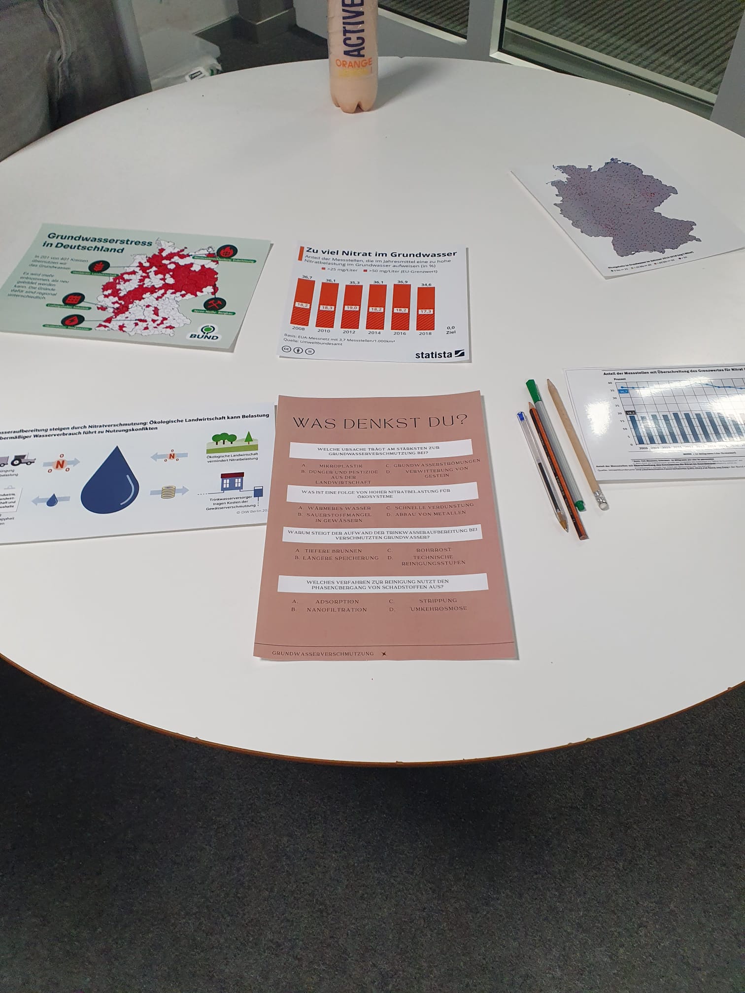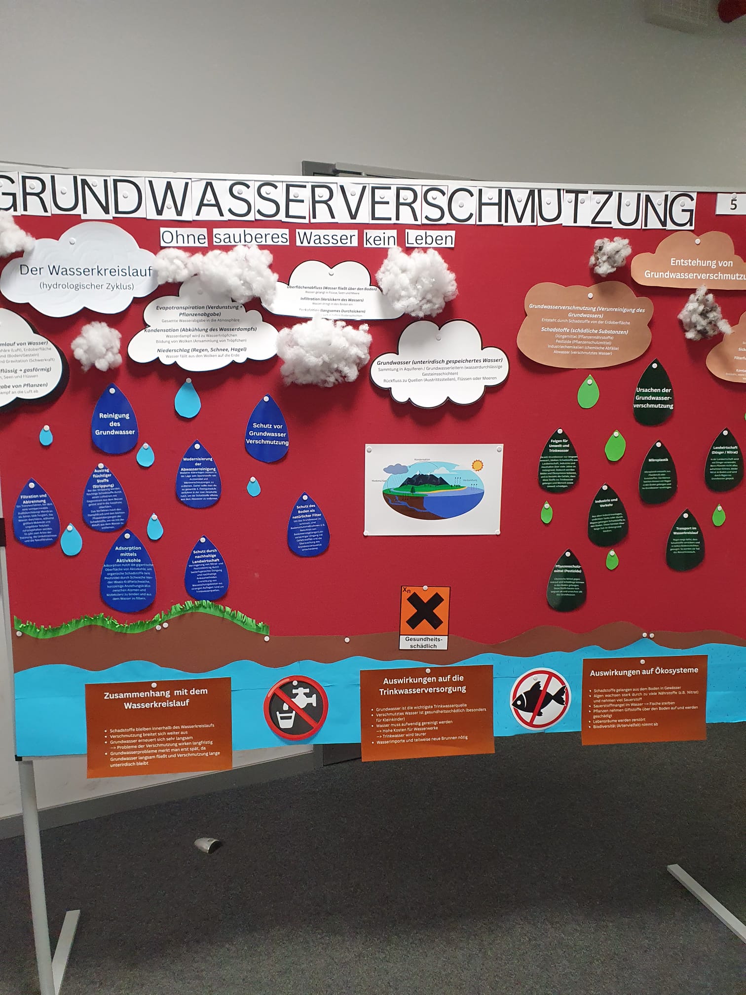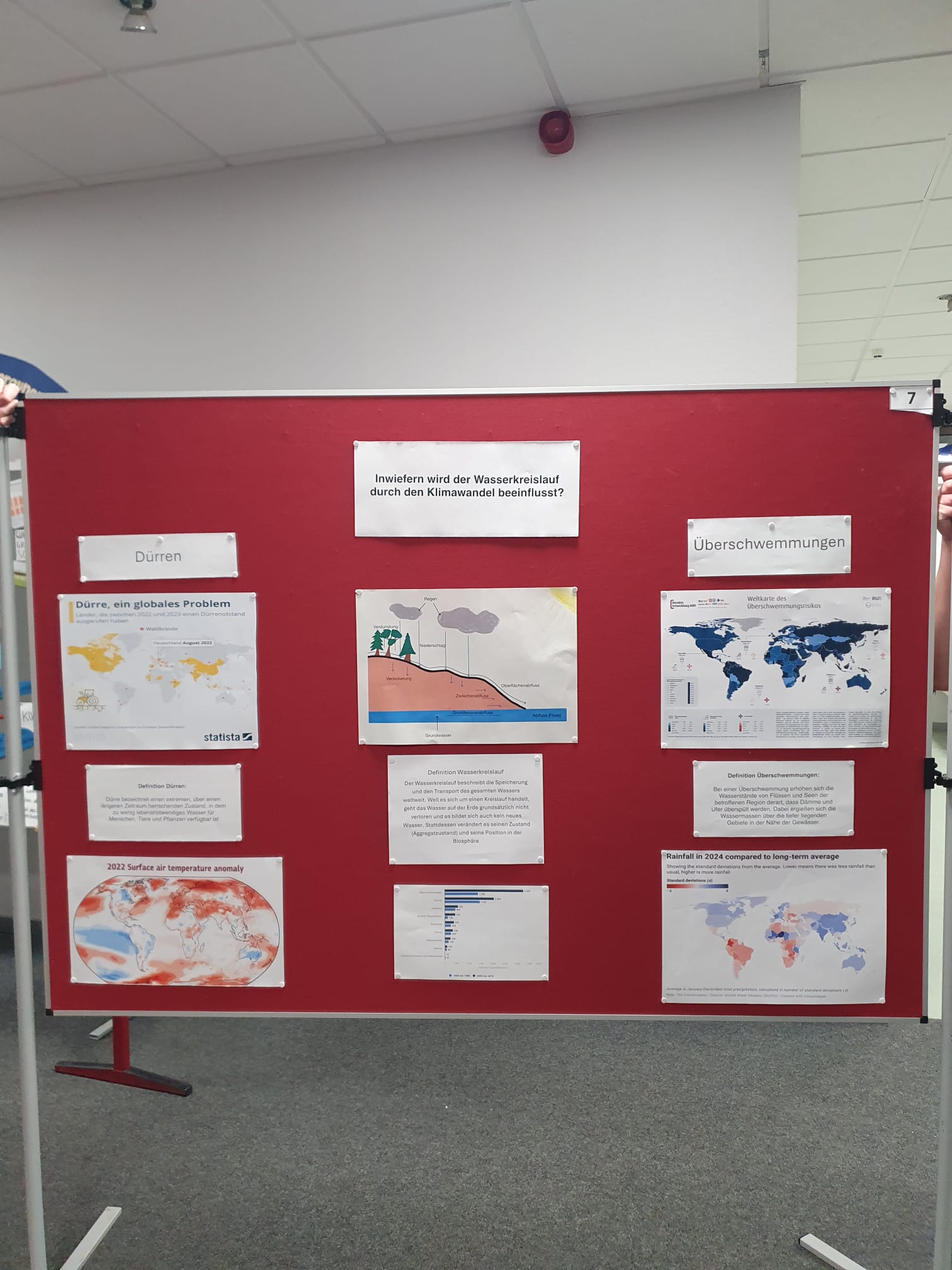 Aus dem vorgegebenen Oberthema „Wasserkreislauf – Der Atem des Planeten“ hatten sich die Gruppen eigene, aufs Profil zugeschnittene Themen abgeleitet und auf kreative Art und Weise auf Stellwänden veranschaulicht. Dazu wurde der Inhalt zusätzlich noch durch die Gruppenmitglieder erklärt. Die Gäste durften auf einem Feedbackbogen Rückmeldung zu den Stellwänden und zur Art der Präsentation geben. Daraus ergab sich ein fast ausschließlich positives Bild des Abends. Auch die Schülerinnen und Schüler der Profilseminare und die Lehrkräfte hatten nur Gutes zu berichten.